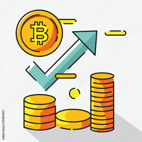 Golden coin bitcoin sign. Money and finance symbol Cryptocurrency coin bank concept. Bitcoin icon illustration