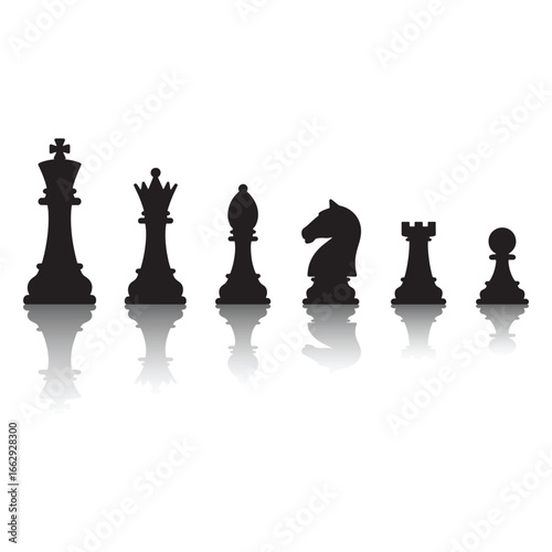 Iconic chess pieces set king queen rook knight silhouette simple graphic design game strategy element representation silhouette
