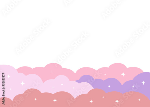 Dreamy pastel sky with fluffy pink clouds at sunset for inspirational design