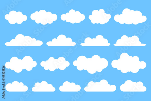 White cloud and blue sky set. cartoon clouds in flat design. Icons vector illustration