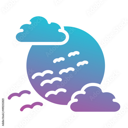 Bright sun shining through soft white clouds in a vibrant blue sky background, symbolizing a sunny weather or peaceful summer day. Vector illustration