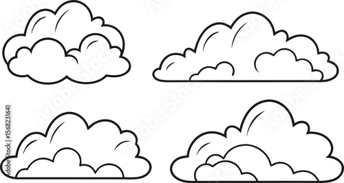 Silhouette of various cloud formations, abstract weather and sky concept, black and white vector illustration
