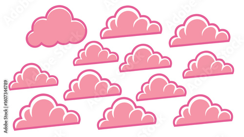 Pink clouds isolated on transparent background. Stylish flat design for banners, posters, cards, web banners. Vector illustration.