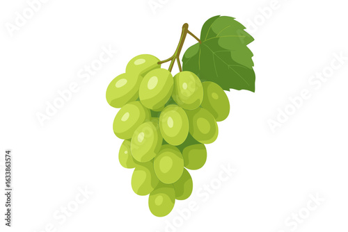 Vibrant cartoon bunch of shiny green grapes with a single leaf and stem.