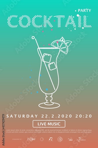 Cocktail party poster template. Cocktail party invitation poster. Poster design with cocktail glass on gradient background.