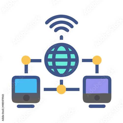 Global data servers icon. Network infrastructure symbol. Internet connectivity representation. Vector illustration. EPS 10.