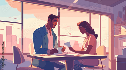Figure man and woman sitting in a cafe flat style vector