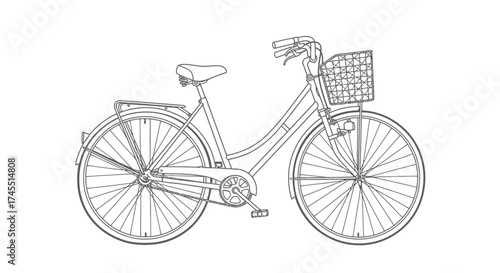Vintage city bicycle with classic basket retro transportation illustration, eco friendly urban commuting design