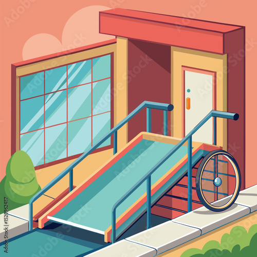 Minimalist Vector Wheelchair Accessible Ramp and Building Entrance Design