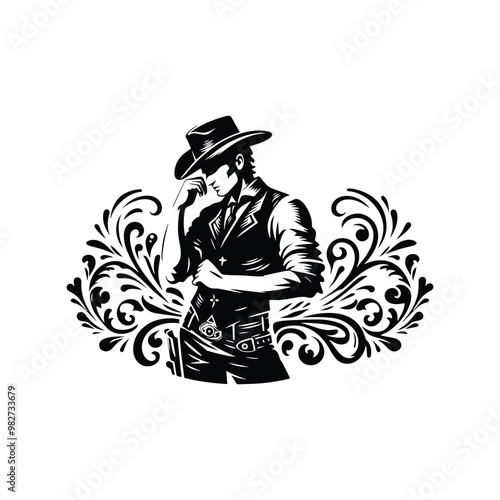 Vintage western hand drawn elements illustration