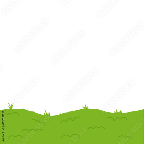 Meadow grass vector illustration, prairie row, cutout transparent background, png file, nature landscape, green grass, field, summer, wildflowers, eco-friendly, farming