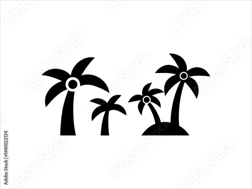Three trees with varying heights and leafy canopies illustrated in black and white