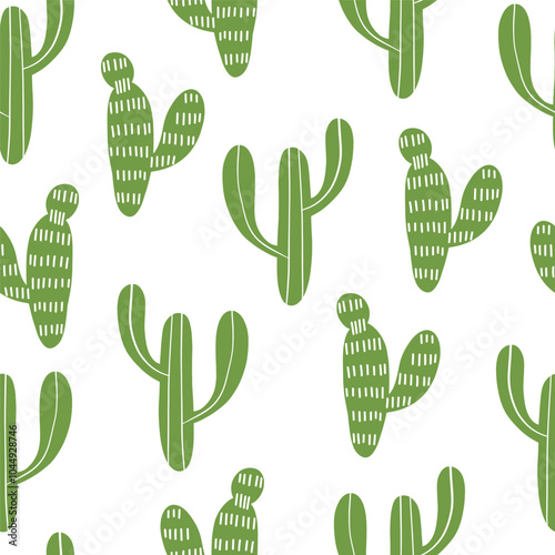 Vector cactus plants seamless pattern background with hand drawn