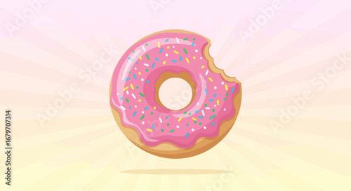 Continuous one line of a donut with icing and a bite taken out, representing snack and pleasure, hand drawn vector illustration.