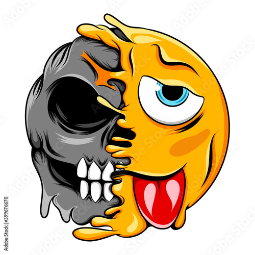 A wink and limp face expression changes to normal laugh death skull emoticon