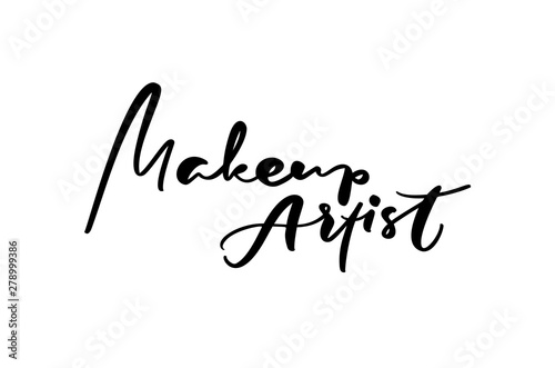 Makeup fashion logo text. Lettering illustration. Calligraphy phrase for gift cards, decorative cards, beauty blogs. Vector hand drawn lettering phrase. Handwritten ink inscription
