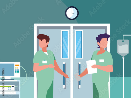 Doctors team. Medical staff doctor and nurse, group of medics. Hospital communication. Vector illustration in a flat style