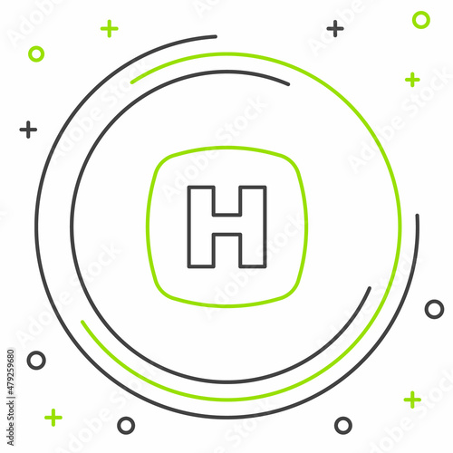 Black line Hospital signboard icon isolated on green and white background. Random dynamic shapes. Vector