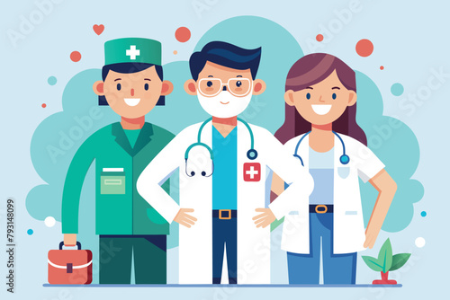 A group of doctors in professional attire standing next to each other, doctor and nursing team, Simple and minimalist flat Vector Illustration