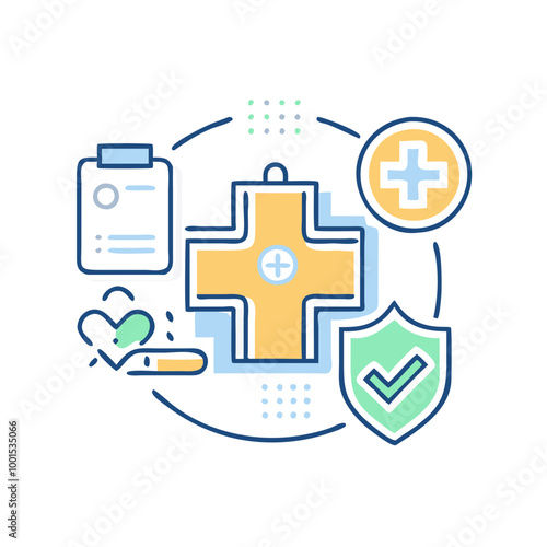 Medical cross icon, symbol of healthcare and assistance, minimalist style
