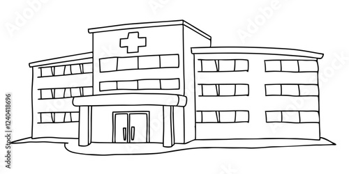 Continuous one line drawing hospital building construction at countryside. Medical health care infrastructure hand drawn minimalist concept. Modern single line draw design vector graphic illustration