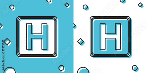 Black Hospital sign icon isolated on blue and white background. Random dynamic shapes. Vector Illustration