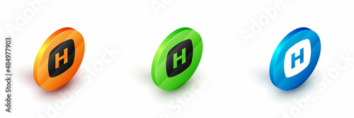 Isometric Hospital signboard icon isolated on white background. Circle button. Vector