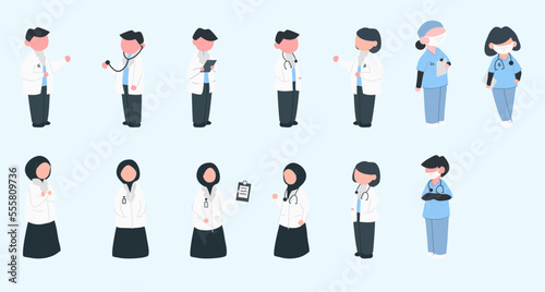 Medical staff team Set of Doctor in Masks , nurses and medical personnel characters. young group of medics. Flat style vector illustration.
