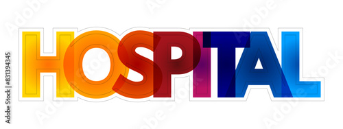 Hospital - an institution providing medical and surgical treatment and nursing care for sick or injured people, colourful text concept background