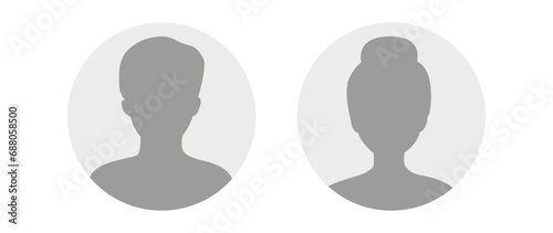 Default anonymous user portrait vector illustration flat vector designs. Man and woman vector profile signs with space for text