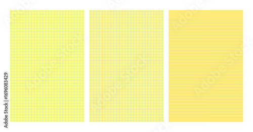 Set of yellow legal pad pages with lined or grid designs