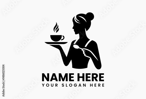 Hand Carrying Tray on the Restaurant, Cafe or Bar - Waiter Hand Illustration Symbol Logo Vector