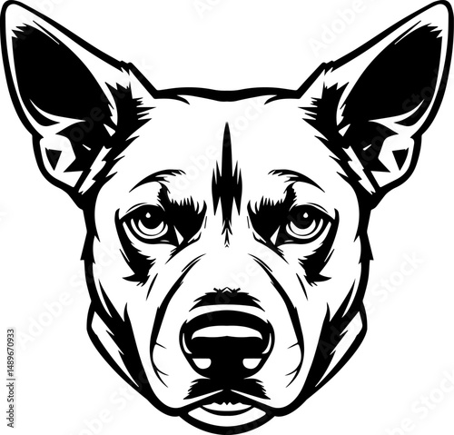 Monochrome Engraving Style Portrait of a Winking Terrier Dog.