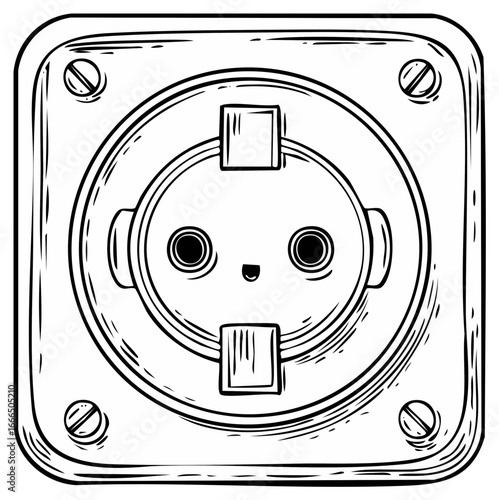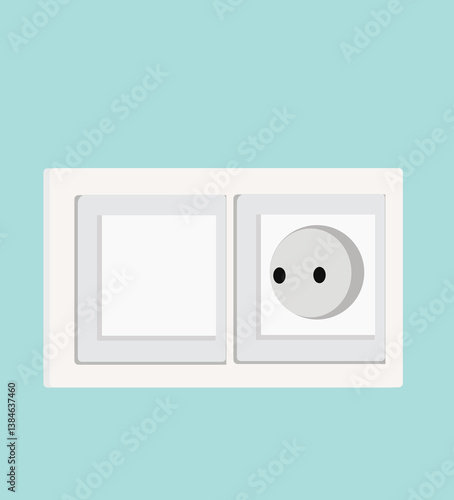 Power socket, switch and extension vector outlet for electric plugs and electricity illustration. Set of different types of power isolated sockets and switchers.
