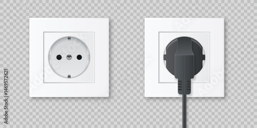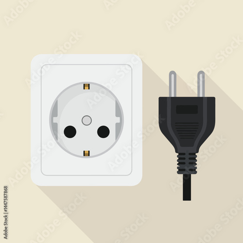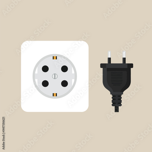 Electrical Socket with Plug. The concept of connection and disconnection. Connection concept. Electrical plug and socket disconnected. cable power outage. Power socket disconnect simple linear style.