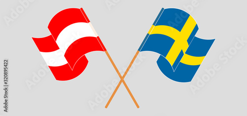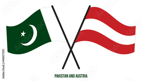 Pakistan and Austria Flags Crossed And Waving Flat Style. Official Proportion. Correct Colors.