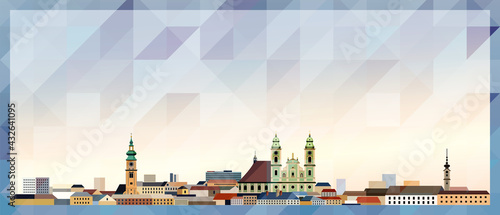 Linz skyline vector colorful poster on beautiful triangular texture background