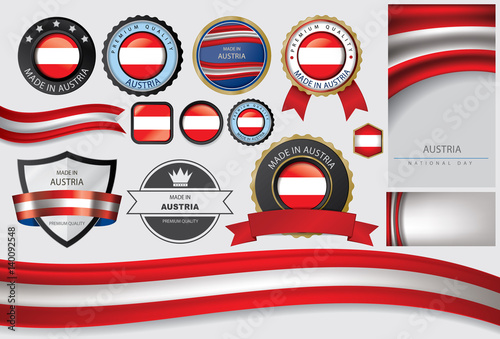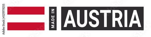 Made in Austria label sign. Product emblem. Flag of the country of manufacture. Vector illustration