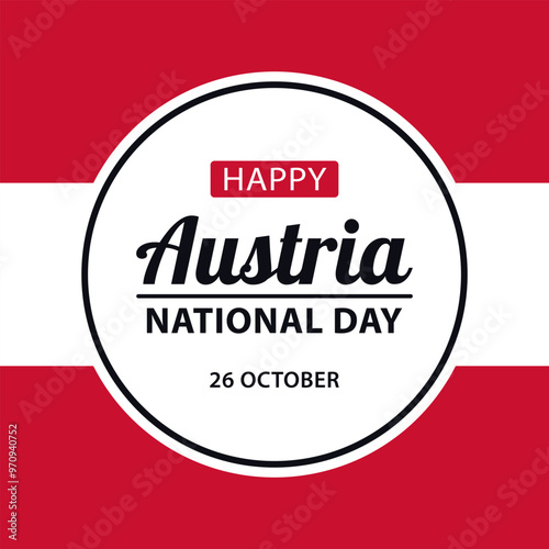 Austria National Day, flat vector design for poster, banner or greeting card. Text Happy Austria National Day, 26 october on the background of Austrian flag.