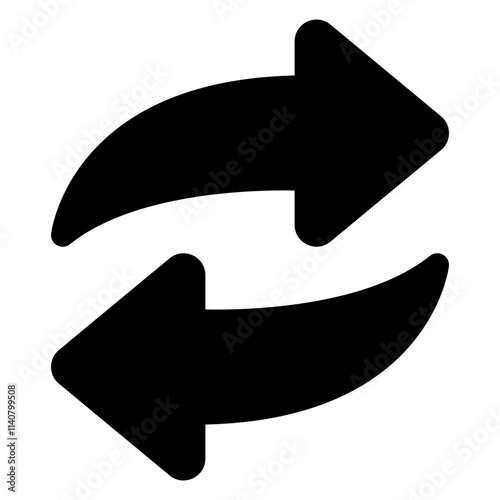 Black replay or reload arrow glyphs flat design icon, simple round turn workflow silhouette interface infographic concept element for app ui ux logo web button isolated on white background