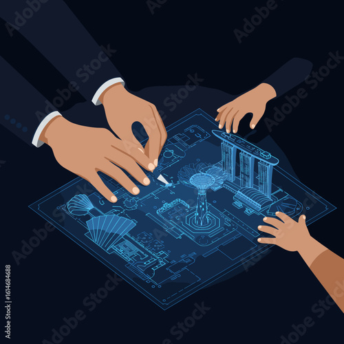 Abstract futuristic map of Singapore. Mechanical circuit of the country. Technology space background.