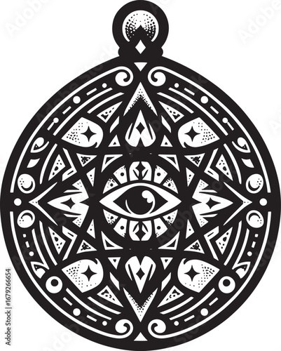 A symbol of mystic amulet with intricate details and symbolic representation, perfectly encapsulating the essence of arcane charm and esoteric fascination.