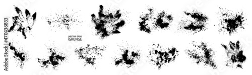 collection of black ink Splatter, black paint, ink brush strokes, brushes, lines, grungy. Dirty artistic design elements, Black inked splatter dirt stain splattered spray splash with drops blots