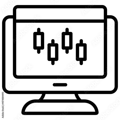 Stock Market Icons. Outline icon set of stock market symbols: bull, bear, stock chart, candlestick graph, portfolio, ticker tape, rising arrow, falling arrow.