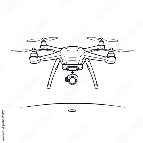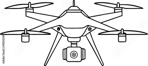 Drone Quadrocopter FPV Line Stroke. Drone Vector Isolated. White Background.