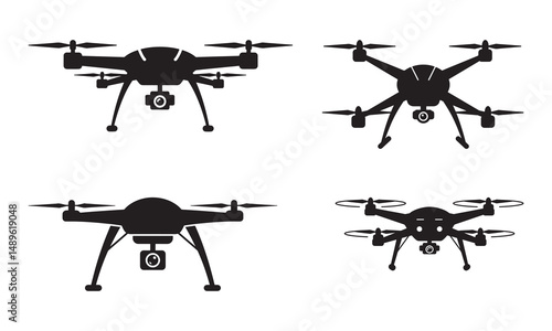 Drone silhouette vector, drone camera icon silhouette vector illustration