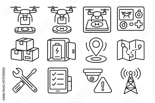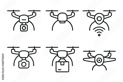 Minimalist drone icons vector illustration. Perfect for technology and aviation concepts. Editable stroke.