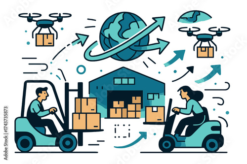 drone flying in a vector scene featuring enthusiasts enjoying drones in open spaces. drone flying