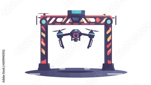 Flying camera, transportation gadget, robot dron Isolated vector icon. Flat illustration