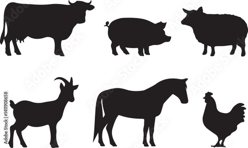 Outline vector icons set of farm and domestic animals including livestock, poultry, and other common creatures Vector